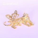 This exquisite leopard crystal stand combines elegance and mystique, perfectly designed to showcase your precious crystal spheres, minerals, and metaphysical collections. Available in three stunning metallic finishes (Gold, Coppery, and Silver), this artistic display stand features an intricately crafted leopard with detailed butterfly wings, creating a magical platform for your favorite crystals.