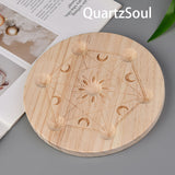 Celestial Wooden Crystal Ball Stand - Sacred Geometry Display for Crystals
