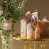 Experience the gentle nurturing energy of our premium Flower Agate crystal towers infused with pink amethyst. Each hand-selected tower showcases beautiful floral patterns with delicate pink inclusions that promote growth, abundance, and emotional healing. These unique crystal points make perfect meditation tools, home decor accents, or thoughtful gifts for crystal enthusiasts.