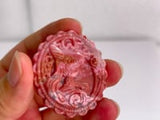 This exquisite hand-carved rhodonite features a delicate magical girl pattern, meticulously crafted to showcase the stone's natural pink beauty. Each piece measures approximately 39.3mm (1.55") in diameter and 8.5mm (0.33") in thickness, making it perfect for collectors and crystal enthusiasts.