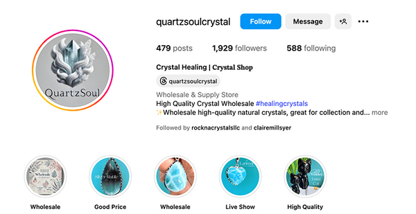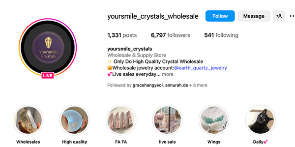 As a trusted wholesale crystal supplier, we actively connect with our community on Instagram. Our accounts showcase new arrivals, behind-the-scenes content, and live wholesale events to help you see our products in action and learn more about who we are.